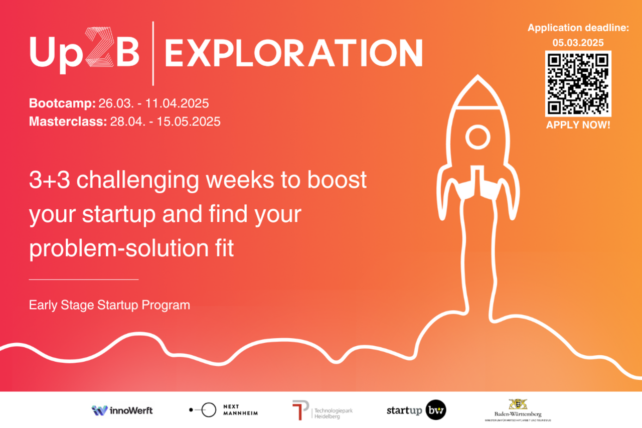 Im Rahmen von “Up2B Exploration” erhalten die Teilnehmenden die Gelegenheit, ein zweiwöchiges Bootcamp zu absolvieren. Mittels Workshops, Einzelsitzungen und Keynotes werden die Start-ups bei der Ausarbeitung und Weiterentwicklung ihrer B2B-Geschäftsmodelle mit Hilfestellung von Expertinnen und Experten unterstützt. Zum Abschluss der Runde können die teilnehmenden Start-ups ihre Ideen beim Demo Day präsentieren. Die besten acht Teams erhalten Zugang zur vertiefenden Masterclass.