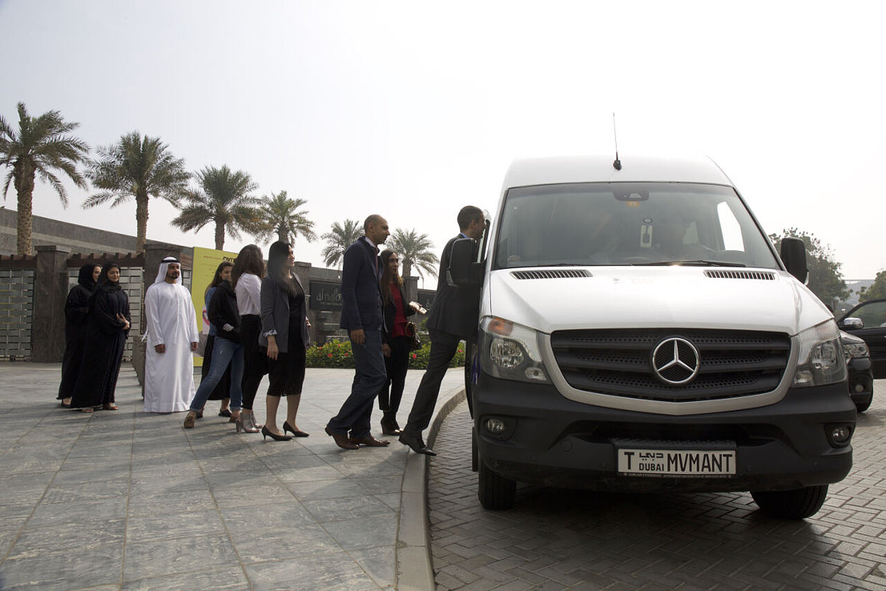 Acht Sprinter-Kleinbusse nehmen auf zurzeit zwei Linien Fahrgäste auf und setzen sie später wieder ab. Routing und die Disposition der Fahrzeuge wird von künstlicher Intelligenz verwaltet. Fahrgäste bestellen den Bus per App. „So können wir nahezu einen Tür-zu-Tür-Service anbieten. Nächste Woche kommt die dritte Linie zur Internet-City von Dubai dazu, wo die großen Tech-Firmen wie Google, Microsoft, IBM und Oracle sitzen“, sagt Blochin Cuius. Das Angebot ist vergleichbar mit dem On-Demand-Service des Daimler-Startups Via.