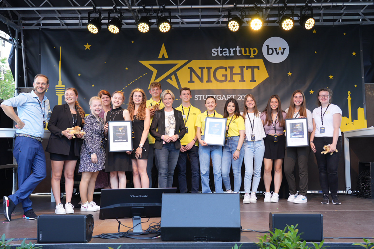 Acht Schülerteams sind heute beim Landesfinale des Wettbewerbs “Start-up BW Young Talents” gegeneinander angetreten. Das Team Blind Glasses vom HAP-Grieshaber Gymnasium im BZN in Reutlingen/Rommelsbach überzeugte die Jury mit einer Idee zur Unterstützung sehbehinderter Menschen. Das Team Sunny Bubble von der Walther-Groz-Schule in Albstadt-Ebingen belegte den zweiten Platz und Platz 3 ging an das Team Faske vom Progymnasium Burladingen. Die Preise für die ersten drei Plätze übergab Wirtschaftsministerin Dr. Nicole Hoffmeister-Kraut persönlich an die Teams.