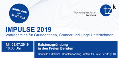 Gründungsinteressierte und junge Unternehmen haben vielen Fragen. Fachleute kennen viele Antworten. Deshalb lädt das Technologiezentrum Konstanz jeden Monat eine Expertin oder einen Experten ein – zu Themen wie Marketing und Kommunikation, Finanzen und Recht, Strategie, Innovation und Management. Interessierte bekommen so wertvolle Informationen, Tipps und IMPULSE. Praxisnah und kompetent.