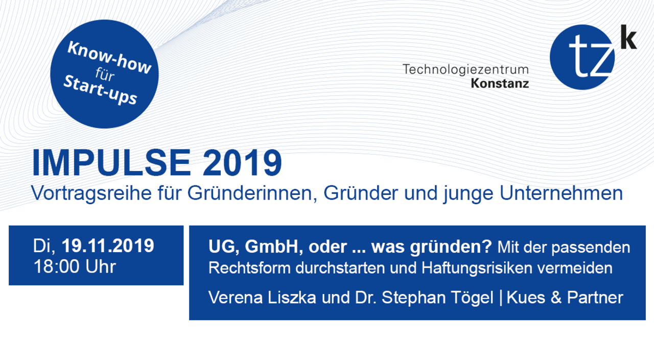 Donnerstag, 19.11.2019 | 18:00 Uhr | UG, GmbH, oder ... was gründen? Mit der passenden Rechtsform durchstarten und Haftungsrisiken vermeiden