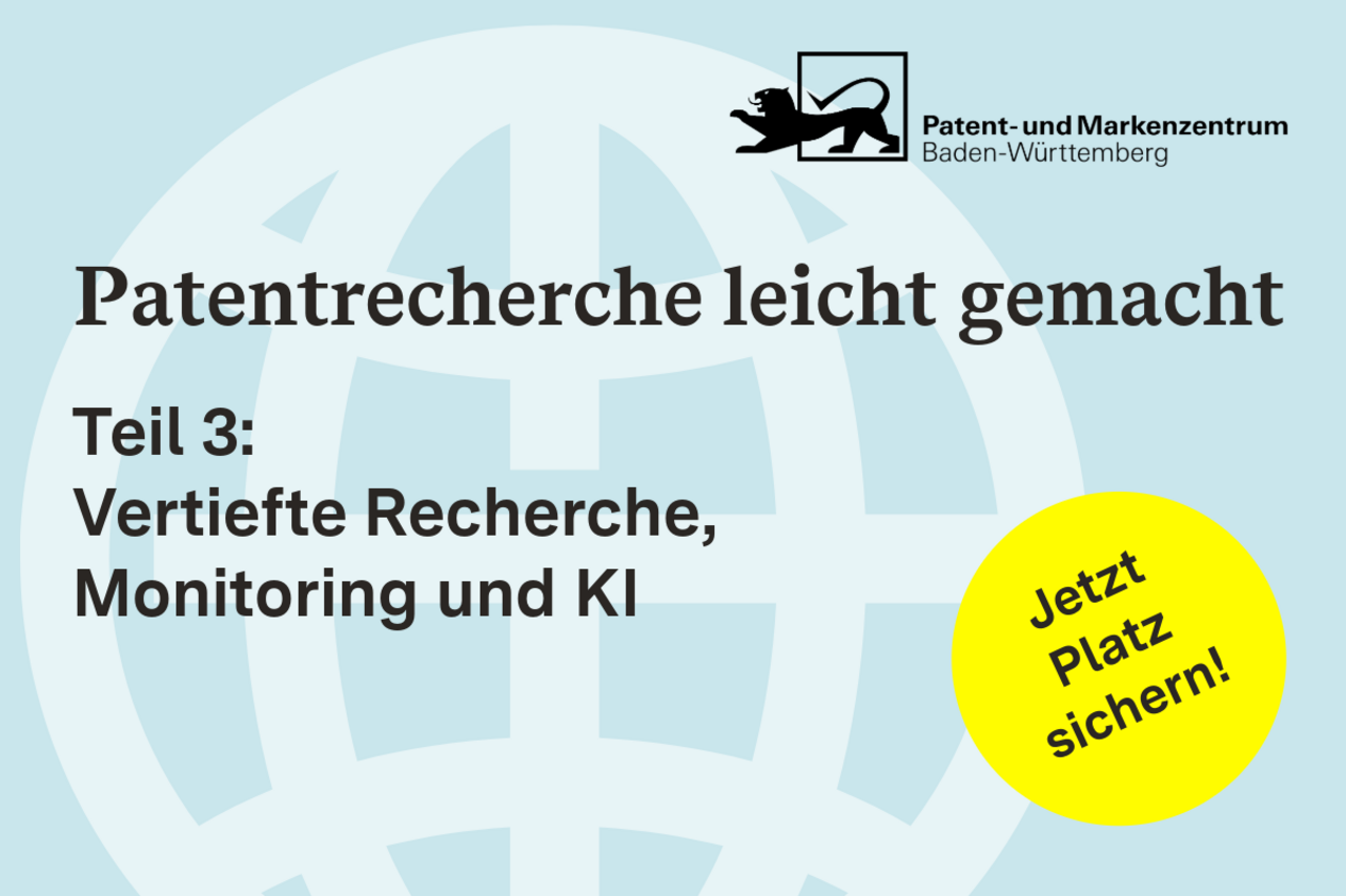 Die vierteilige Seminarreihe "Patentrecherche leicht gemacht” richtet sich an Start-ups sowie kleine und mittlere Unternehmen (KMU) und baut inhaltlich aufeinander auf. Der dritte Teil bietet sich daher als Aufbauseminar an. Die Teilnahme an einzelnen Terminen der Seminarreihe ist ebenfalls möglich.