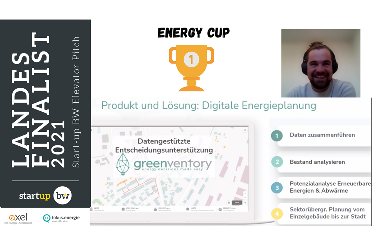 Das Team Greenventory GmbH aus Freiburg überzeugte die Jury mit seiner Software-Lösung zur Identifizierung, Planung und Umsetzung von Energieprojekten.