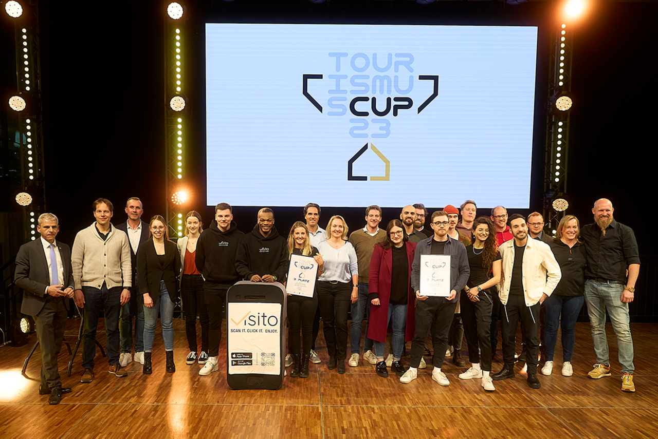 Der zweite Platz, dotiert mit 700 Euro, ging an das Gründungsteam von elysium®, einer Lösung für die Übertragung von Sprache mittels Smartphone für den Einsatz bei Gruppenführungen. Den dritten Platz belegte das Team von visito.me mit einer digitalen Lösung für die Gästeinformation und -kommunikation. Die Gründerinnen und Gründer von visito.me freuen sich über 500 Euro Preisgeld.