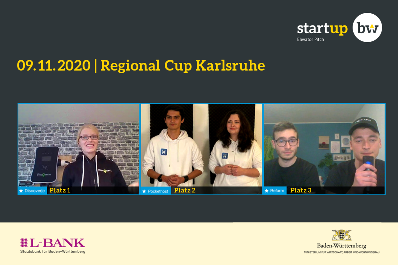 Der Regional Cup Karlsruhe wurde als Online-Format in Kooperation mit der IHK Karlsruhe durchgeführt. Die Preisgelder werden von der L-Bank zur Verfügung gestellt.