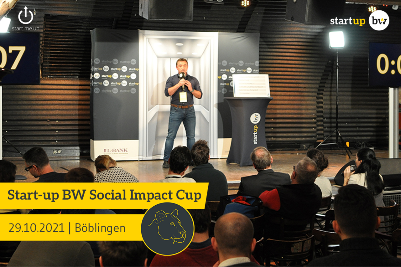 Ihr habt eine Gründungsidee oder habt bereits ein Start-up rund um das Thema Soziale Arbeit, Klimawandel, Nachhaltigkeit oder Inklusion? Dann bewerbt Euch für den Start-up BW Social Impact Cup am 29.10.2021! 10 Start-ups dürfen Ihre Geschäftsidee im 3-minütigen Pitch vor einer Jury, und vor unserem Fachpublikum präsentieren! Die Siegerinnen und Sieger erhalten neben dem Preisgeld, das von der L-Bank gefördert wird, zusätzlich das Ticket für das Start-up BW Elevator Pitch Landesfinale! Die Veranstaltung wird live auf YouTube gestreamt.
