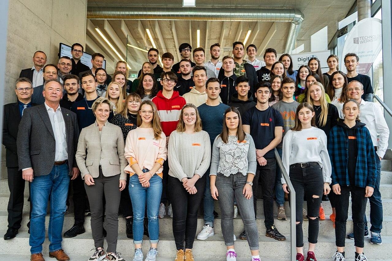 Die frühzeitige Förderung des Gründungsgeistes und unternehmerischen Denkens, das ist die Zielsetzung von Start-up BW Young Talents. Für den Zollernalbkreis hat die Technologiewerkstatt Albstadt im Februar über 200 Schülerinnen und Schüler bei der Ausarbeitung ihrer Gründungsideen unterstützt. Als Abschluss der kreativen Tage präsentierten die Schülerinnen und Schüler einige der Gründungsideen vor Baden-Württembergs Wirtschaftsministerin Dr. Nicole Hoffmeister-Kraut und Albstadts Oberbürgermeister Klaus Konzelmann.
