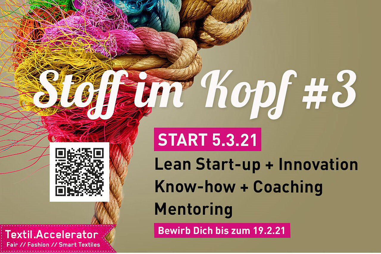 Ziel des Programms ist es, aus innovativen Trends und Themen wie Digitalisierung, Smart Textiles und Fair Fashion zukunftsfähige textile Geschäftsideen zu realisieren. Das Programm findet online statt, eine Bewerbung ist bis zum 19. Februar 2021 möglich.