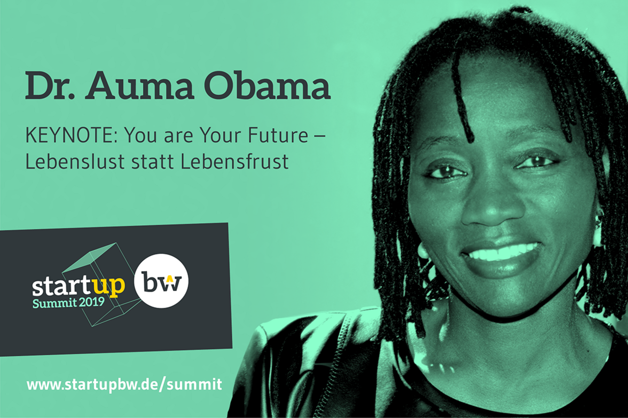 Dr. Auma Obama ist Unternehmerin und Gründerin der Sauti Kuu Foundation. Sie ist in Kenia geboren und aufgewachsen, studierte Germanistik in Heidelberg und lebte mehrere Jahre in Deutschland und Großbritannien, bevor sie zurück nach Kenia ging. Mit Ihrer Stiftung setzt sich Dr. Auma Obama für die Stärkung des Selbstbewusstseins junger Menschen ein, um die vielfältigen Potentiale der Jugend für eine positive Entwicklung des gesellschaftlichen und gemeinschaftlichen Zusammenlebens zu nutzen. Neben ihrem vielfältigen und mehrfach ausgezeichnetem gesellschaftlichen Engagement ist sie als Autorin tätig und eine gefragte Rednerin. Wir freuen uns, dass Frau Dr. Obama den Start-up BW Summit 2019 besucht. Ihre Keynote wird sie nach der Eröffnung durch Ministerpräsident Winfried Kretschmann und Wirtschaftsministerin Dr. Nicole Hoffmeister-Kraut auf der Hauptbühne halten. Start der Eröffnung ist um 10:00 Uhr.