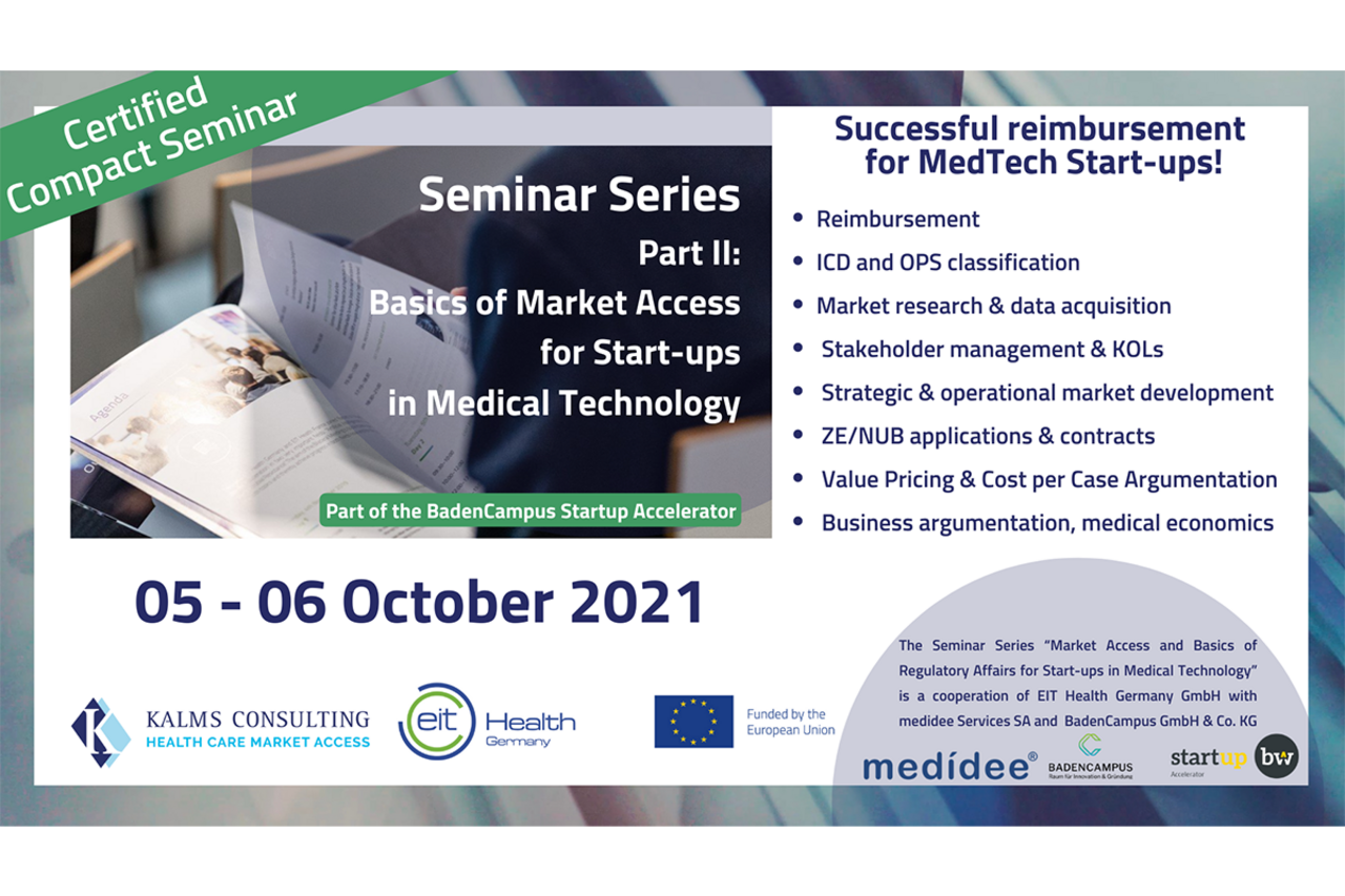 Die Fachseminarreihe ist ein Angebot von EIT Health, dem BadenCampus Accelerator und medidee und wird unterstützt durch das Ministerium für Wissenschaft, Forschung und Kunst Baden-Württemberg.