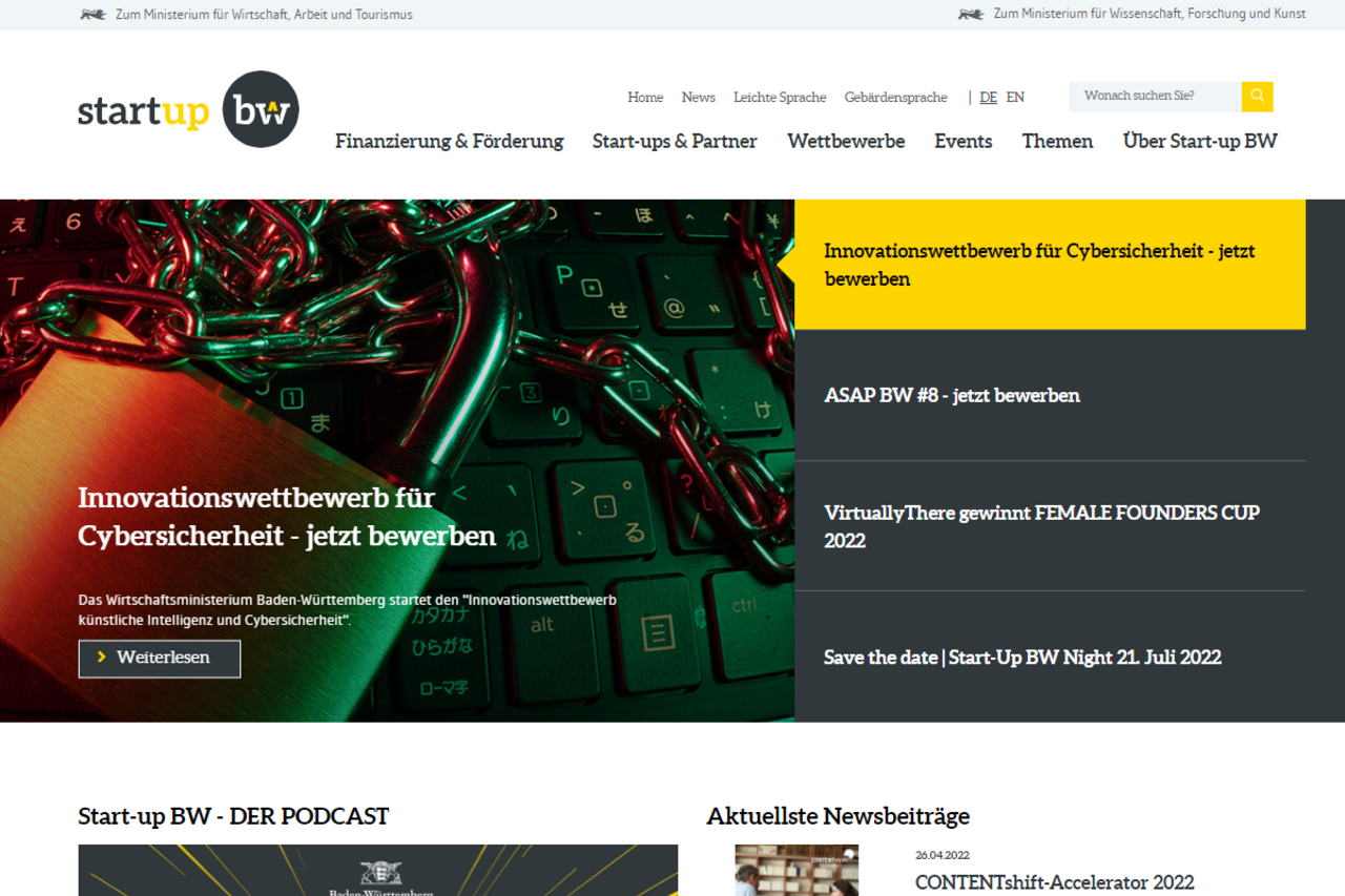 Gesucht wird ein Dienstleister(-verbund) für Technik, Redaktion und Hosting der landesweiten Internetplattform www.startupbw.de