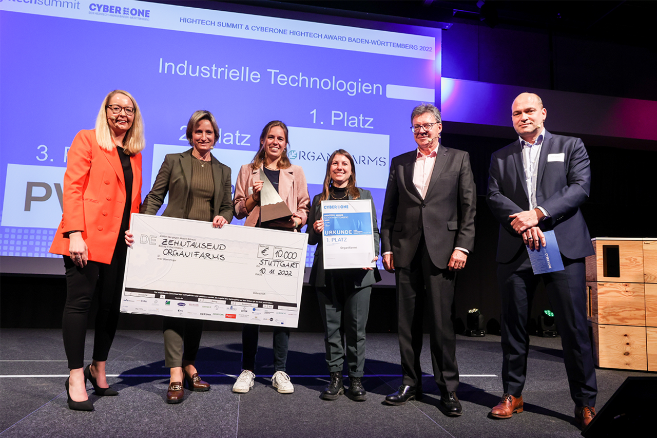 Der CyberOne Hightech Award gilt als die wichtigste Plattform für Hightech-Start-ups in Baden-Württemberg. Wirtschaftsministerin Dr. Nicole Hoffmeister Kraut verkündete die Gewinnerinnen und Gewinner und verlieh die begehrten Awards in folgenden Kategorien: