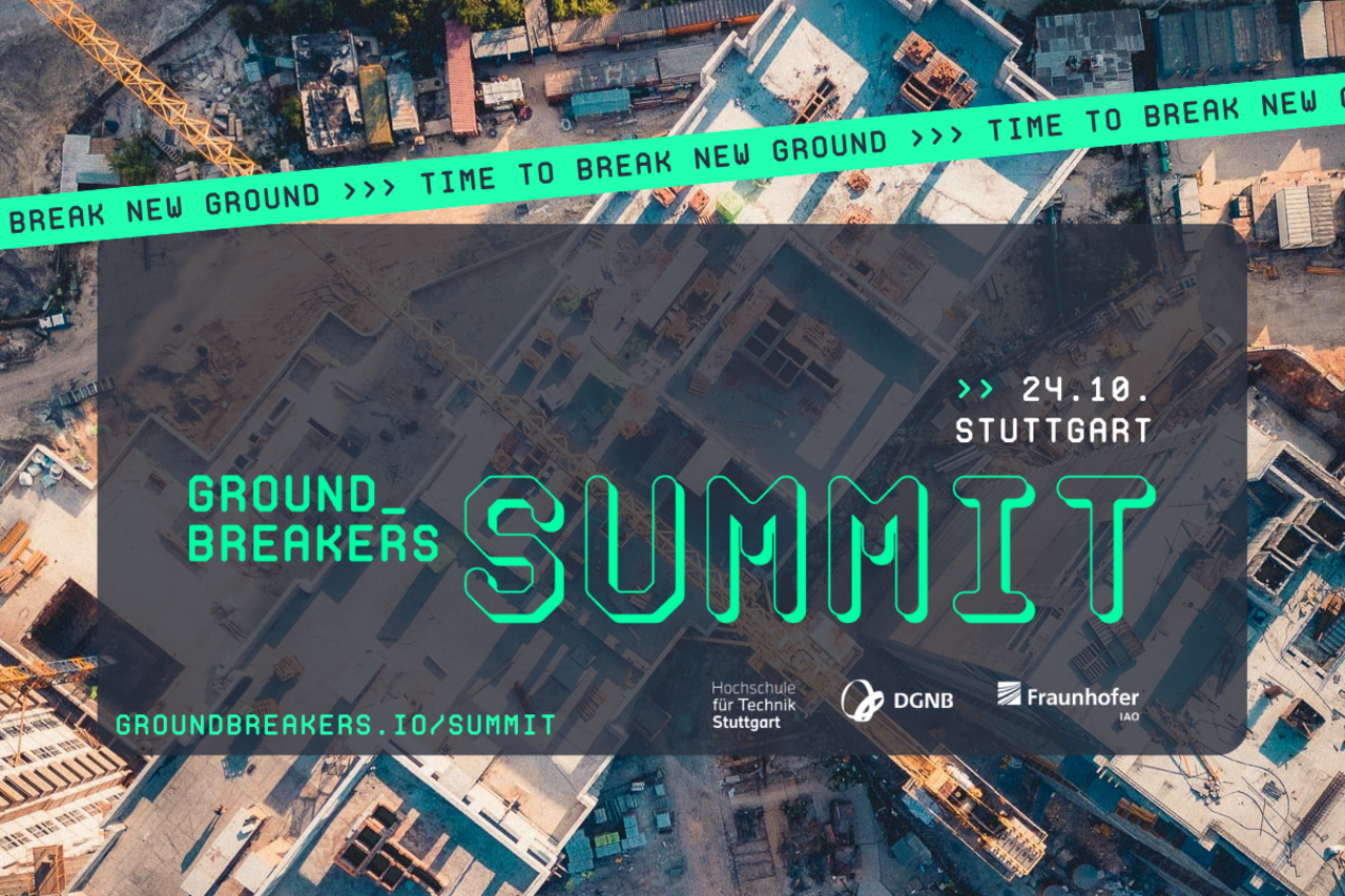 Veranstaltet wird der Summit von GROUNDBREAKERS, eine Initiative der HFT Stuttgart, der DGNB und dem Fraunhofer IAO. Mit dem gleichnamigen Accelerator, gefördert durch das Wirtschaftsministerium Baden-Württemberg, unterstützt die Initiative Gründungsteams bei ihren Ideen und Vorhaben für die Bau- und Gebäudewirtschaft und vernetzt sie mit Bauunternehmen.