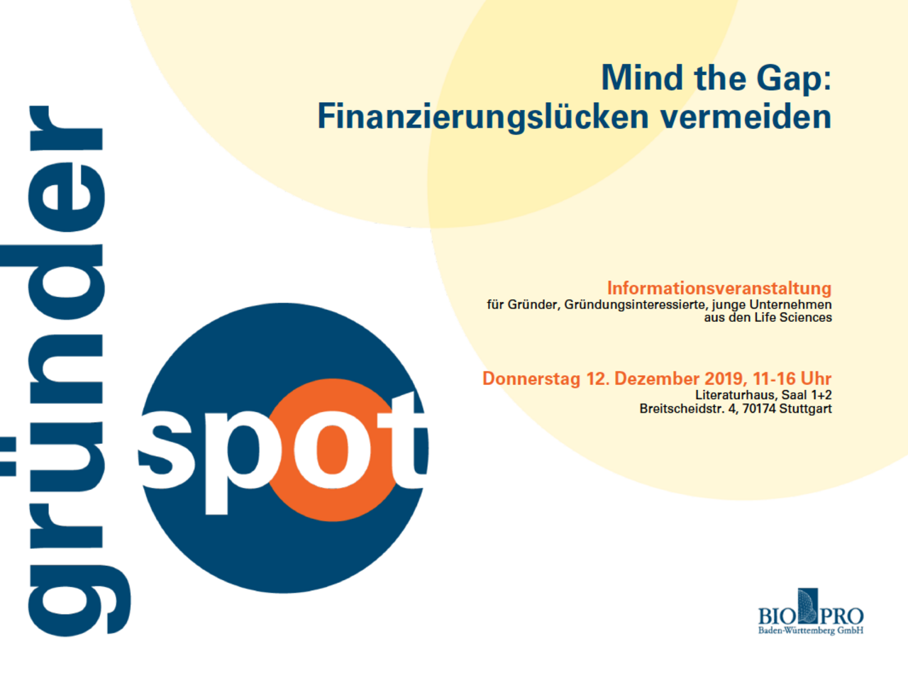 Mit der Veranstaltungsreihe gründerspot informiert Start-up BW Landespartner BIOPRO Baden-Württemberg Gründerinnen und Gründer in regelmäßigen Abständen zu relevanten Themenfeldern in den Life Sciences.