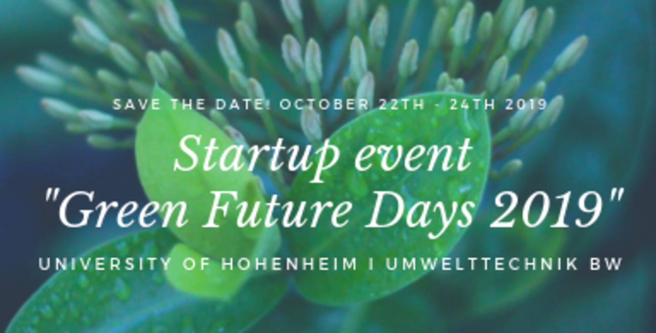 Vom 22. bis 24. Oktober 2019 organisiert der Lehrstuhl für Entrepreneurship der Universität Hohenheim im Rahmen des Projektes HOMA! (Hohenheim macht!) und in Kooperation mit Umwelttechnik BW, der Landesagentur für Umwelttechnik und Ressourceneffizienz Baden-Württemberg, die Veranstaltung „Green Future Days 2019“ in der Filderhalle. Durch die Event-Teilnahme besteht die Möglichkeit, eigene Ideen voranzubringen und das Netzwerk um interessante Kontakte zu erweitern.