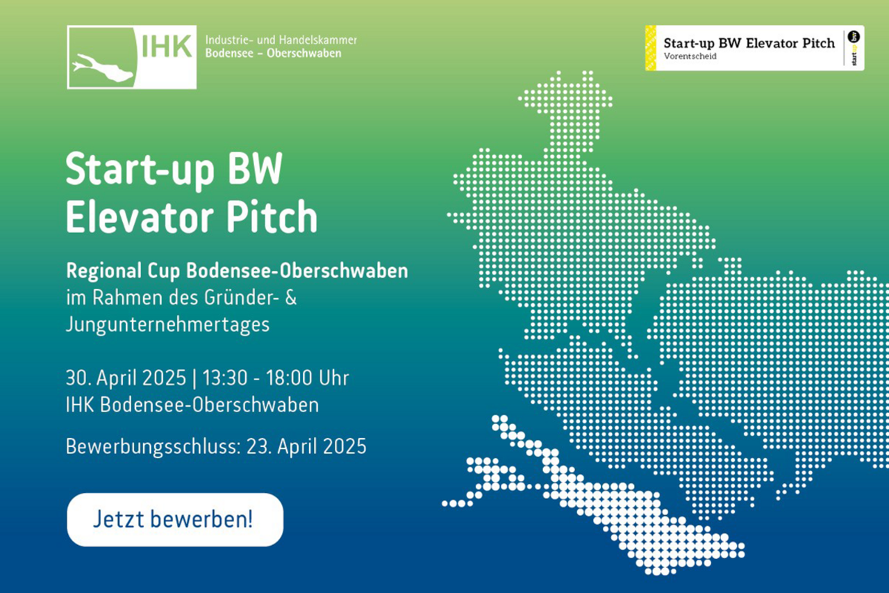 Im Rahmen der Veranstaltung findet mit dem Regional Cup Bodensee-Oberschwaben 2025 ein weiterer Vorentscheid des landesweiten Gründungswettbewerbs Start-up BW Elevator Pitch statt. Der Wettbewerb bietet Gründerinnen und Gründern sowie Start-ups aus THE LÄND eine Bühne, um ihre Geschäftsideen vor einer Jury und Publikum zu präsentieren. Den Siegerinnen und Sieger des Vorentscheids erhalten nicht nur ein Preisgeld, sondern sichern sich auch einen Platz im Landesfinale des Start-up BW Elevator Pitch.