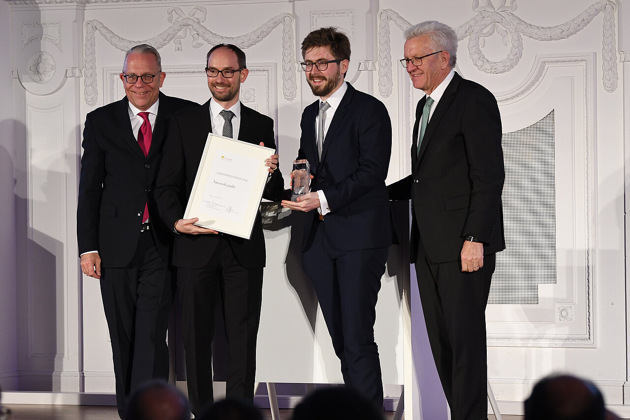 „Die heute ausgezeichneten Unternehmen zeigen uns, was aus einer Idee werden kann, wenn man einfach mal anfängt und macht. Trotz aller Klippen und Stromschnellen des Anfangs beweisen sie Durchhaltevermögen und machen damit anderen Mut, die sich ebenfalls überlegen, ob sie gründen sollen“, so der Schirmherr des Landespreises für junge Unternehmen, Ministerpräsident Winfried Kretschmann, bei der Preisverleihung. Gemeinsam mit dem Vorstandsvorsitzenden der L-Bank, Dr. Axel Nawarth, übergab Kretschmann im Rahmen der Preisverleihung im Neuen Schloss Stuttgart die Auszeichnungen an die erfolgreichen Teilnehmerinnen und Teilnehmer des Wettbewerbs im Jahr 2018.