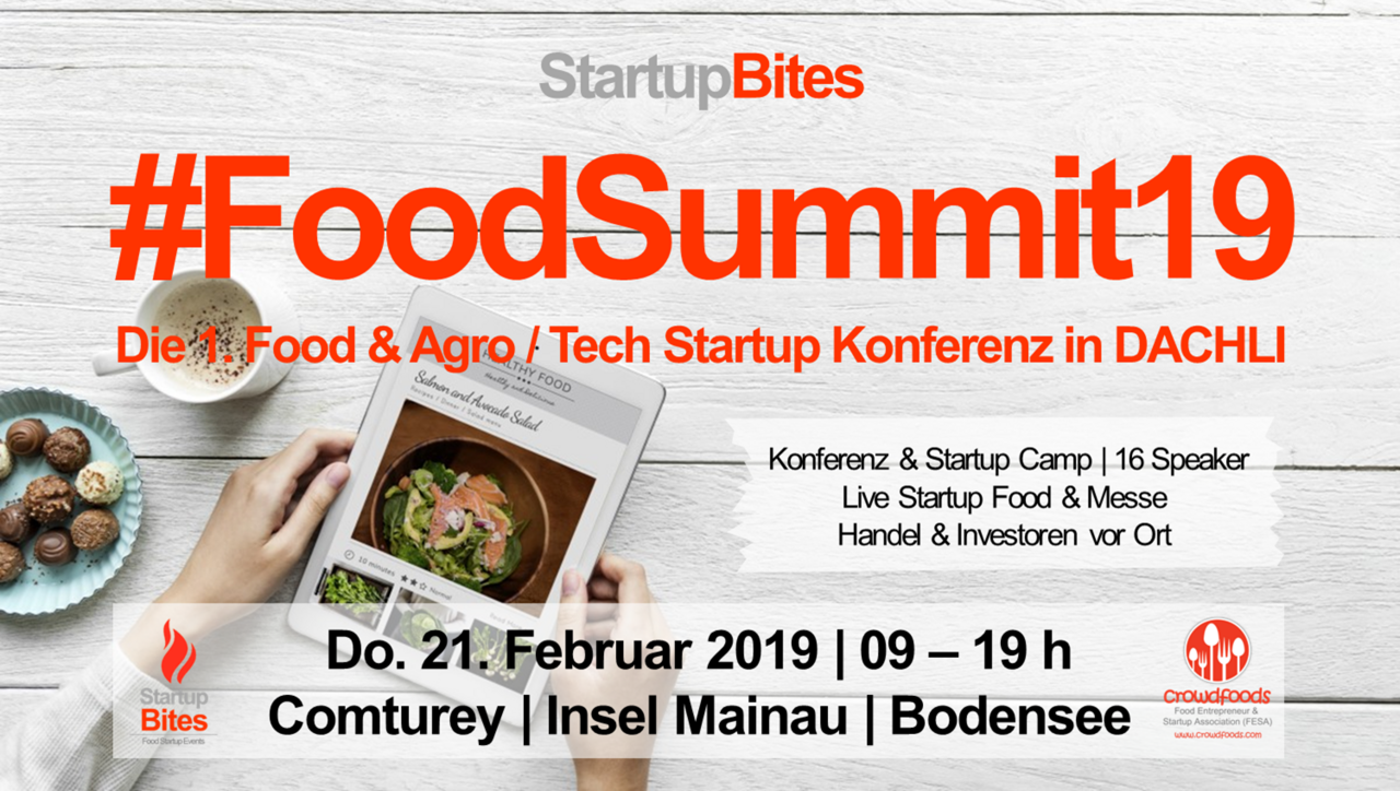 Nach der Gründung als erster Verband für Food & Agro Start-ups in Deutschland, Österreich, der Schweiz und Liechtenstein veranstaltet die Food Entrepreneur & Startup Association crowdfoods.com am 21. Februar 2019 mit dem „StartupBites #FoodSummit19“ auf der Mainau die erste länderübergreifende Konferenz für Food- und Agro-Start-ups am Bodensee.