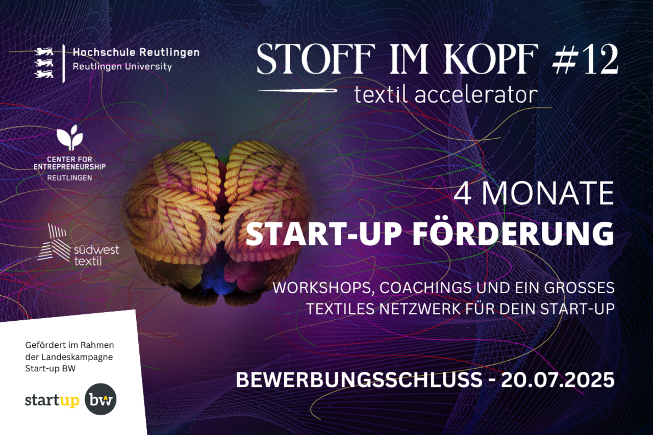 Über vier Monate erhalten baden-württembergische Gründende und Start-ups Unterstützung bei der Entwicklung ihrer innovativen Geschäftsideen im textilen oder textil-digitalen Bereich. Im Rahmen des Qualifizierungsprogramms werden Workshops und Seminare zu den Schwerpunktthemen Digitalisierung, Smart Textiles und Fair Fashion sowie zur Vertiefung von gründungsrelevantem Wissen angeboten. Darüber hinaus werden die Teilnehmenden mit individuellem Coaching und Mentoring von Expertinnen und Experten unterstützt. Zudem können textile Labore und Coworking Spaces der Hochschule Reutlingen für Prototyping genutzt werden.
