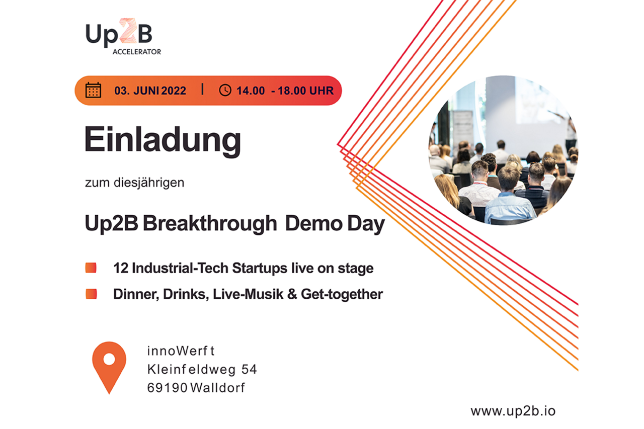 Zuschauerinnen und Zuschauer können sich auf der Veranstaltungsseite "Up2B Breakthrough Demo Day 2022" anmelden, die technologieorientierten Start-ups und ihre Lösungen kennen lernen und sich mit anderen Teilnehmenden austauschen.