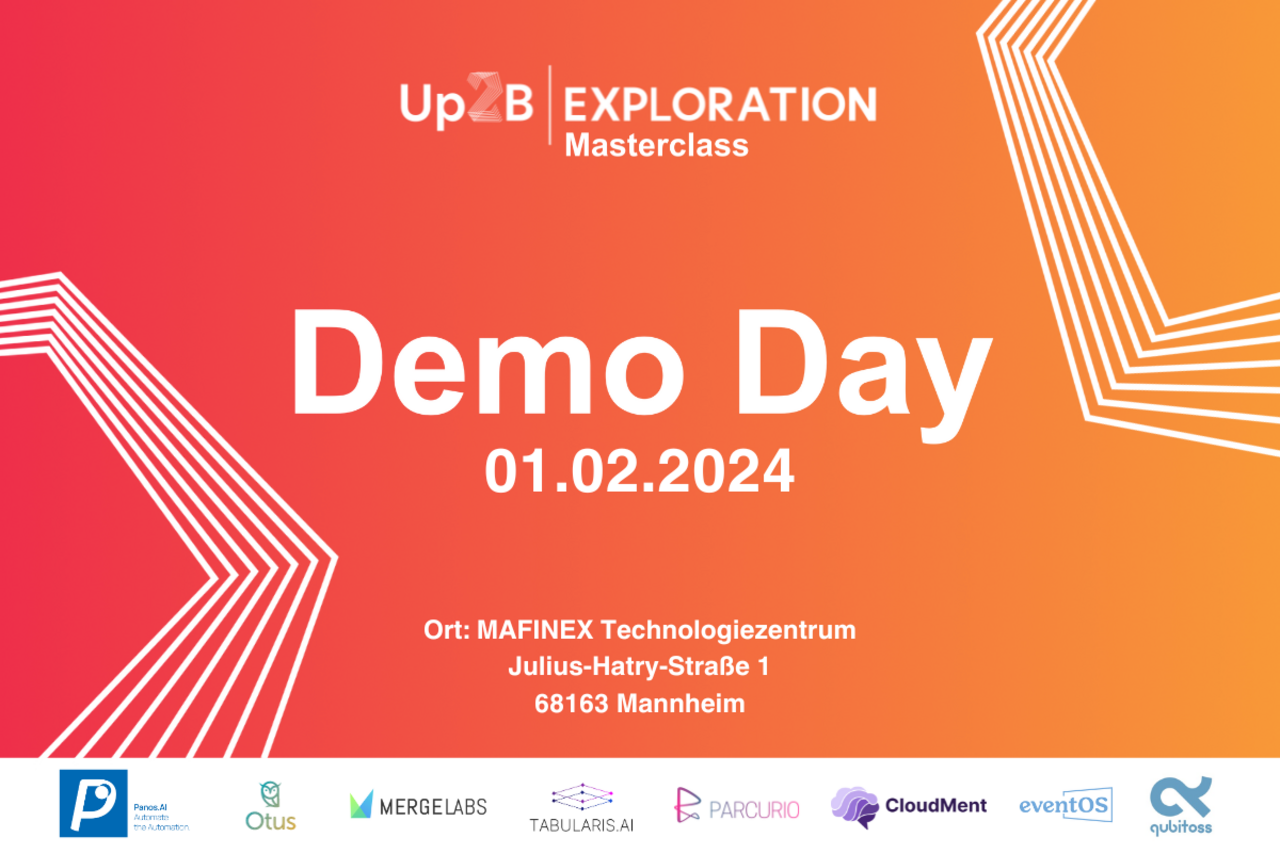 Das Programm des Up2B Accelerators unterstützt frühphasige High-Tech Start-ups mit B2B Kundenfokus. Ziel von Up2B Exploration ist es, dass Teilnehmende mit Unterstützung von Expertinnen und Experten an der Ausarbeitung und Weiterentwicklung ihrer Geschäftsmodelle arbeiten. Zum Abschluss der Runde präsentieren ausgewählte Start-ups ihre Ideen beim Demo Day.