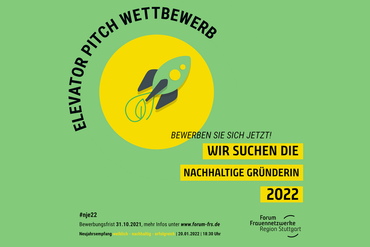 Mit dem Elevator Pitch Wettbewerb sollen die Ziele der nachhaltigen Entwicklung (SDG’s) der UN Agenda 2030 sowie die Rolle von Frauen in der gesellschaftlichen Transformation sichtbarer gemacht werden. Gründerinnen mit nachhaltigen Geschäftsideen können sich mit ihrem Elevator Pitch bis zum 31. Oktober 2021 bewerben. Der Einsendeschluss endet um 23:59 Uhr. Weitere Informationen und die Möglichkeit zur Bewerbung unter www.forum-frs.de/elevator-pitch.