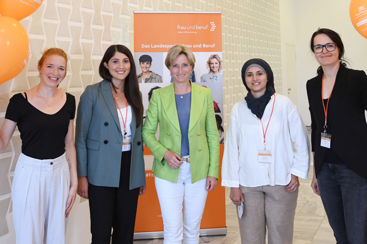 „Mit unserer neuen digitalen Plattform ‚Frau und Beruf digital Baden-Württemberg‘ führen wir unser erfolgreiches Landesprogramm ‚Kontaktstellen Frau und Beruf Baden-Württemberg‘ mit seinen vielfältigen Angeboten in die digitale Zukunft. Die Plattform steht ab sofort allen Frauen, Unternehmen und Verbänden landesweit zur Verfügung. Es gilt, für die Zukunft gut aufgestellt zu sein und die Möglichkeiten der Digitalisierung voll auszuschöpfen – auch, um die Gleichstellung in der Wirtschaft weiter voranzubringen“, freute sich Wirtschafts- und Arbeitsministerin Dr. Nicole Hoffmeister-Kraut beim offiziellen „Go Live“ der digitalen Plattform www.frauundberuf-bw.de im Neuen Schloss in Stuttgart.